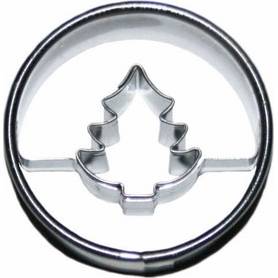 Vykrajovátko cukroví ve tvaru kolečka s jedličkou uprostřed.