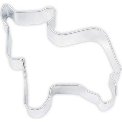 Vykrajovátko na cukroví ve tvaru kravičky s rozměry 4,6 x 4,8 cm.