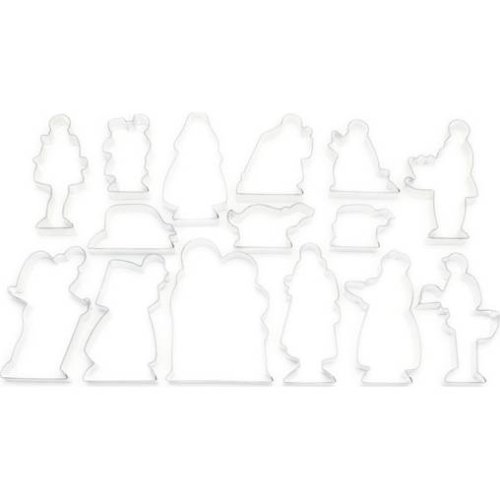 Sada patnácti vykrajovátek s vánočními motivy vám umožní vytvořit si snadno a rychle krásný betlém z těsta nebo perníku. Pokud postavičky a motivy ozdobíte bílkem, bude takový betlém krásnou vánoční dekorací.