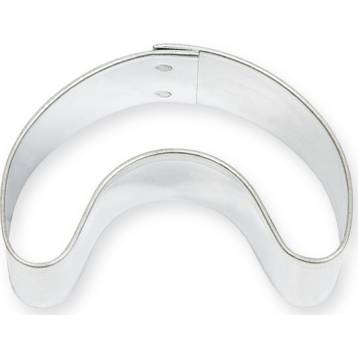 Vykrajovátko na cukroví ve tvaru rohlíčku s rozměry 4 x 2,6 cm.