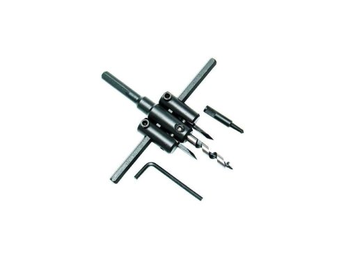 Stavitelný vykružovák otvorů do dřeva, PVC či sádrokartonu, lze rychle přenastavit pomocí přiloženého imbusu.