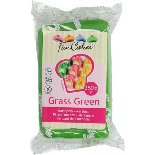 Marcipán zelené barvy z kvalitních surovin pro zdobení dortů a cukrářských dezertů. 250 g v balení.