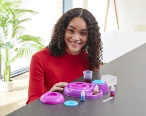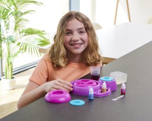 Vyrobte si vlastní roztomilé tvary mýdla pomocí super mýdlovače. Použijte kostky mýdla a smíchejte se třemi přiloženými barvami, abyste vytvořili nové barevné kombinace. Poté nalijte do zábavných tvarovaných forem a sledujte, jak vaše mýdla začínají získávat tvar. Věnujte jako dárek přátelům nebo jako speciální dárek jen pro vás.