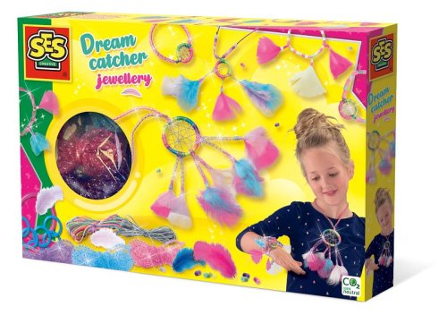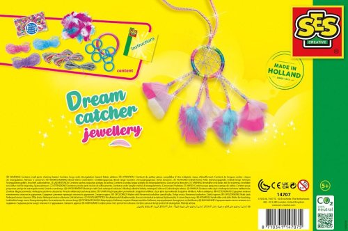 Lapače snů jsou nejen zábavou ve vaší ložnici, ale můžete je nosit i jako šperk! S touto sadou šperků lapač snů si můžete vyrobit krásné náramky a náhrdelníky. Použijte přiložená peříčka, korálkovou směs, saténovou nit a další předměty k vytvoření jedinečných výtvorů. Skvělé také tvořit společně s přáteli. Sada obsahuje: 9 kroužků na lapače, peříčka, 3 třpytivé dutinky, 400 korálků, saténová nit, vyšívací příze. Věk: 5+