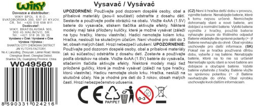 Vysavač s efekty. Velikost 24 cm. 4xAA baterie nejsou součástí. Funkce vysávání. Obsahuje vysavač a kuličky k vysávání. Vysavač se dá otevřít a vysátý obsah vysypat.