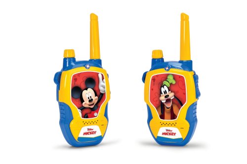 Dětské vysílačky v designu Disney Mickey, 2,4 GHz s dosahem až 100 m, potlačení šumu, 2 ks v setu. Barva modrá/žlutá. Velikost 16 cm.