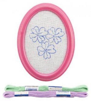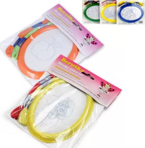 Kreativní set na vyšívání pro všechny šikovné holčičky a malé švadlenky. Sada obsahuje plastový rámeček s napnutým plátýnkem s předtištěným obrázkem, dva další obrázky na vyšití a bavlnky. Sada v několika barevných kombinacích bavlnek a rámu, a v několika motivech obrázku.