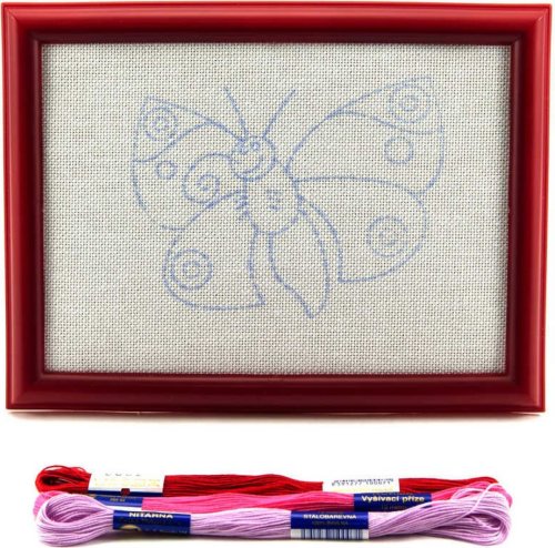 předtištěný obrázek k vyšití v rámečku 3 různé bavlnky