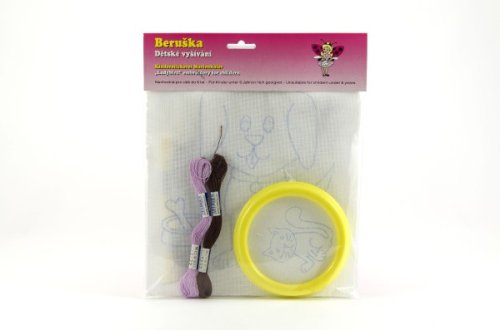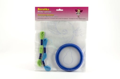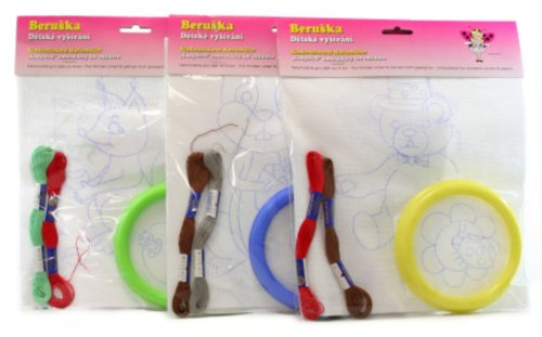 Kreativní set na vyšívání pro všechny šikovné holčičky a malé švadlenky. Sada obsahuje plastový rámeček s napnutým plátýnkem s předtištěným obrázkem, dva další obrázky na vyšití a čtyři bavlnky ve čtyřech různých barvách v sáčku. Sada v několika barevných kombinacích bavlnek a rámu, a v několika motivech obrázku.