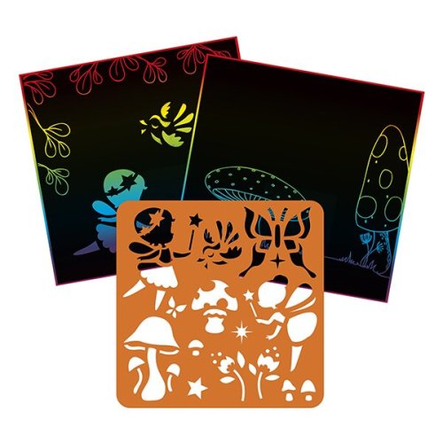 Vyškrabávací obrázky s motivy víl skryté pod černým podkladem. Pomocí odnímatelné šablony s obrysy obrázků a dřevěného škrabátka (je součástí balení) následně vytvořené a vyškrabané obrázky odhalíte. Omalovánky obsahují 24 listů. Gramáž 400 g. Vhodné pro děti od 5 let,,Rozměry balení: 15 x 20,5 cm.