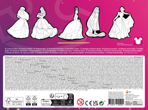 Objev kouzelný svět Disney princezen s touto kreativní sadou vyškrabávacích samolepek! Pomocí škrabky odhal barevné obrázky, které se skrývají pod černou vrstvou. Každý motiv můžeš následně použít jako samolepku a ozdobit si s ním sešit, dárek nebo přání. Balení obsahuje 5 ks samolepek.