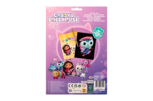 Vyškrabávací obrázky Gábinčin kouzelný domeček – balení obsahuje dva vyškrabávací obrázky o rozměrech 26×19,5 cm + vyškrabávátko.