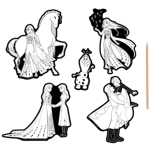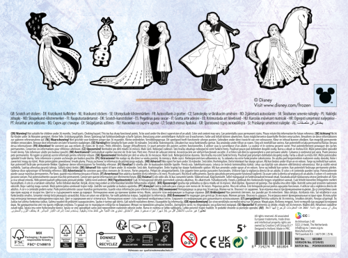 Vyškrabovací obrázky-samolepky s motivem postaviček z pohádky Ledové království. V balení 5 obrázků a dřevěné vyškrabovací pero. Rozměry balení 21,5x21,5 cm. Doporučený věk 5+