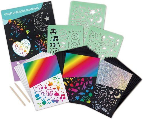 Pozvedněte čmárání na zcela novou úroveň s touto vzrušující sadou na škrábání. Stačí seškrábat své oblíbené vzory šablon dřevěným stylusem, a pokud se cítíte sebejistě, čmárejte si vlastní návrhy a sledujte, jak se pod nimi objeví třpytivé pozadí. Sada obsahuje tři listy A5 zábavných tematických šablon, 20 škrabacích listů se třemi typy barevných vrstev, dva dřevěné stylusy a jeden plakát A4. Zvednutí, držení a používání škrabacích tyčinek pomáhá rozvíjet jemné motorické dovednosti. Sada je skvělá pro povzbuzení kreativního myšlení a představivosti, stejně jako pro rozvoj vyprávění příběhů a jazykových dovedností. Tuto sadu lze použít spolu se stojanem Hape pro extra umělecký nádech. Rozměr balení: 32,5x24x4,5 cm. Věk 4+