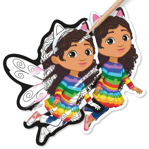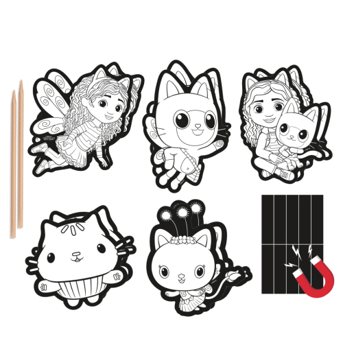 Vyškrabovací obrázky s motivem postaviček z pohádky Gábinin kouzelný domek. V balení 10 obrázků, 2 dřevěná pera a arch s magnety. Rozměry balení 15x25 cm. Věk 3+