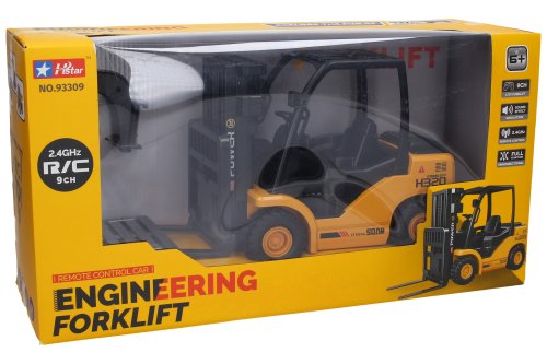 RC vysokozdvižný vozík na dálkové ovládání. Realistický model se zvukovými efekty a plně funkční nakládací plochou. Součástí balení je USB kabel, paleta a adaptér s hákem. Vozík má přepínač ON/OFF na spodní straně. Ovladač nabízí jízdu vpřed/vzad, otáčení vlevo/vpravo, zvukové efekty s možností vypnutí, tlačítko DEMO i ovládání zvedání a pokládání nakládací plochy. Frekvence 2,4 GHz. Vozík je vybaven bateriovým packem 3,7 V (součástí), ovladač funguje na 2x AA baterie (nejsou součástí). Rozměry vozíku: 34 x 12,5 x 18,8 cm. Rozměry balení: 47,5 x 25 x 16,3 cm. Nevhodné pro děti do 3 let. Věk: 6+