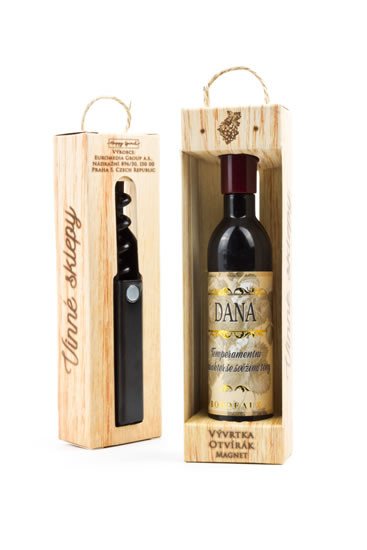Vývrtka ve tvaru vinné lahve s originálním potiskem viněty je vhodným dárkem pro všechny milovníky vína. Užijte si svoji chvilku v dobré společnosti! Vývrtka s magnetem pro uchycení na lednici je balena v dárkové krabičce. Rozměr 12,5 x 3,5 x 2,5 cm.
