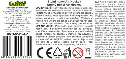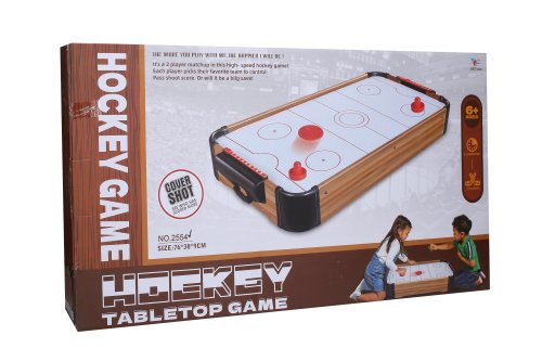 Vzdušný hokej air hockey stůl. Rozměry 76x38x9 cm. Baterie 6xAA, nejsou součástí. Pro 2 hráče.