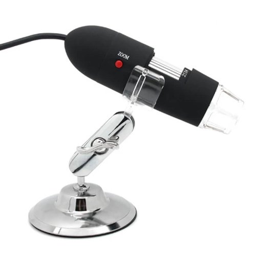 Digitální USB 2,0 mikroskop (mikroskop kamera), zvětšení až 800x Popis Digitální USB mikroskop (mikroskopická USB kamera) s přísvitem, 2 Mpix, zvětšení až 800x, možnost foto a video. Součástí digitálního mikroskopu je instalační CD a stylový stojánek. HD barevný CMOS senzor, vysokorychlostní DSP (instaluje se bez ovladače), 24bit DSP, Optimální rozlišení 640x480, maximální 1280x1024, interpolovaně až 2M optický i digitální zoom, obsahuje digitální měření softwaru a kalibrační pravítko, Vhodné pro mikroskopické zkoumání různých druhů povrchů, používání při opravě drobných částí a využití pro výuky prostřednictvím videa či fotek. Úprava přísvitu možná pomocí ovládacího kolečka.Ideální dárek pro hravé a zvídavé děti, jejich tatínky kutily. Své využití nalezne mikroskop i u maminek, žen a dívek – je velmi vhodný také pro zkoumání vlasů, struktury konečků vlasů a povrchu nehtů.
