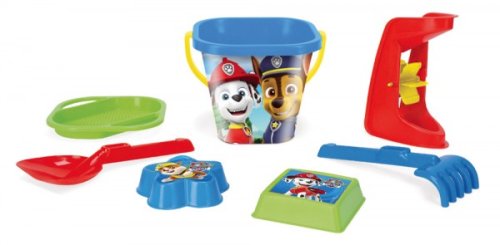 Sada hraček na písek Tlapková patrola obsahující kyblík, formičky, hrabičky s lopatkou, mlýnek a sítko. Hračky Wader jsou vyrobeny z kvalitních, zdravotně nezávadných plastů s vysokou odolností. Rozměry balení 20 x 30 x 18 cm. Vhodné od 12 měsíců.