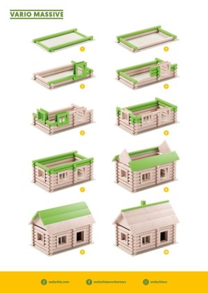 Variabilní stavebnice české výroby umožňuje sestavovat a znovu rozebírat nejméně 12 různých typů budov. Skládá se zejména z robustních kulatých, pečlivě opracovaných bukových dřívek s půlkulatými zámky, manipulace s nimi je výjimečně snadná a bezpečná. Obsahuje však také řadu precizně zpracovaných dílů dveří a oken, kompletní soupis jednotlivých součástí naleznete níže. Stavebnice řady Vario jsou mezi sebou kompatibilní, lze je kombinovat a vytvářet stále nové, rozmanité stavby, mohou tak růst spolu se schopnostmi a dovednostmi dětí. Přírodní povrchová úprava dílů umožňuje individuální úpravy jejich vzhledu, lze je lakovat a barvit dle fantazie. Díky svým jedinečným vlastnostem a zpracování může stavebnice nabídnout vysokou životnost a představovat zábavu předávanou po generace. Dodáváno v pevné a odolné kartónové krabici. Hlavní vlastnosti: 91 dílů celkemprecizní a pečlivé zpracováníz odolného masivního bukového dřevakompatibilní s dalšími stavebnicemi řady Variovyrobeno v České republice