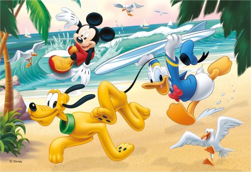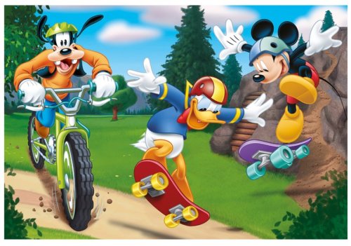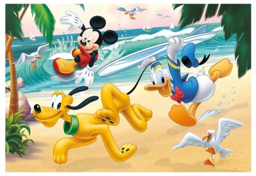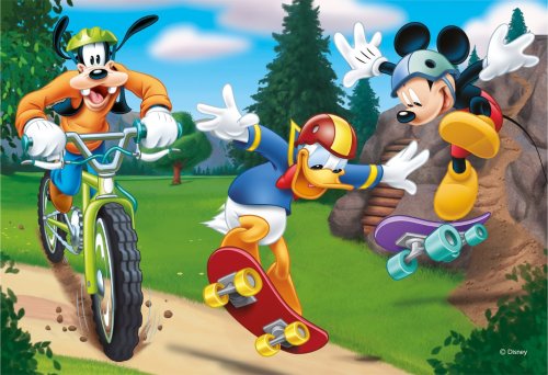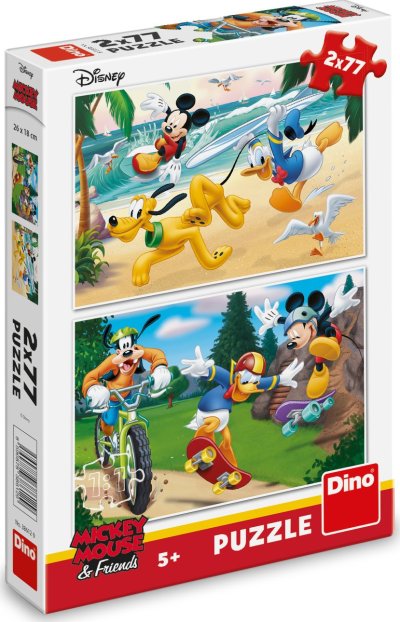 Dětské puzzle s 2 obrázky po 77 dílcích s motivy Mickeyho při sportu.