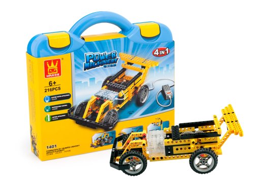 Balení obsahuje: 216 dílků stavebnice Wange, box na 2 x AA baterie (nejsou součástí balení), kabel, elektrický motůrek se světelnou diodou. K vložení baterie do nabíjecího ovladače je třeba použít šroubovák.