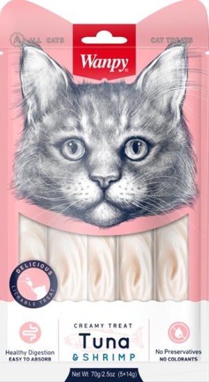 Složení: tuňák, kuřecí maso, krevety, škrob, taurin, čajový polyfenol, vitamíny (A, B2, B3, B5, D3, E), xantanová guma. Analytické složky: hrubý protein 6,5 %, hrubý tuk 0,1 %, hrubá vláknina 1 %, hrubý popel 2 %, vlhkost 90 %. Krmný návod: Podávejte jako pamlsek mezi jídly. Zvířeti zajistěte stálý přístup k čisté pitné vodě. Upozornění: Pohlcovač vlhkosti v přiloženém sáčku není určen ke konzumaci.