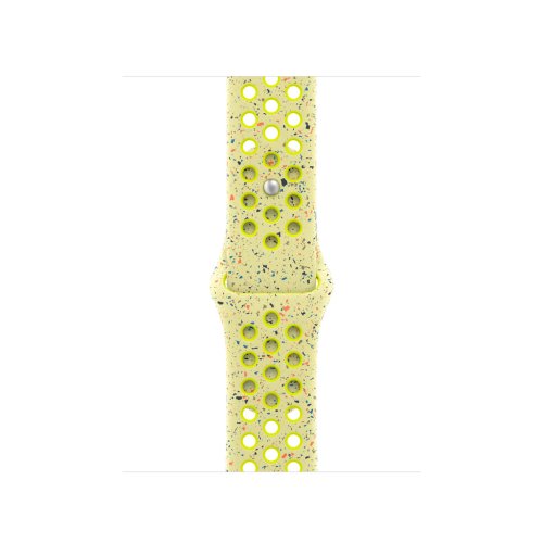 Tenhle sportovní řemínek Nike má vylisované otvory pro větší vzdušnost, je odolný, pevný a přitom překvapivě poddajný. Obsahuje barevné vločky, které tvoří náhodné vzory, takže každý řemínek je originál. Jeho hladký, hutný materiál se elegantně ovine kolem zápěstí a příjemně sedí. A zapíná se na hliníkový kolíček s matným povrchem, do kterého je pečlivě vygravírované logo Nike Run.