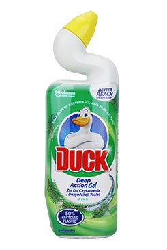 Duck tekutý čistič se svěží vůní je přípravek, který vyčistí WC mísu, odstraní vodní kámen a nečistoty, eliminuje zápach a osvěží. Praktické zakřivené hrdlo láhve snadno dosáhne pod obrubu WC mísy, kde se nejvíc vyskytují usazeniny a zanechává dlouhotrvající vůni.
