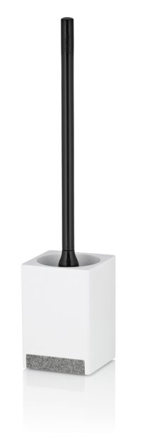 Stylové koupelnové doplňky v bílé barvě: WC sada Cube white je vyrobena z snadno udržovatelného bílého plastu. Nápadná je kombinace s obyčejnou bílou a plastovým prvkem s kamenným vzhledem. Rukojeť toaletní štětky je černá a vyrobena z ABS plastu. Hlava WC kartáče je vyměnitelná, stejně jako samotná rukojeť.Waletová sada má čtvercovou základnu 9,5 x 9,5 cm a je vysoká 45,5 cm. Polyresin, matná bílá 9,5x9,5cm, 45,5cm v