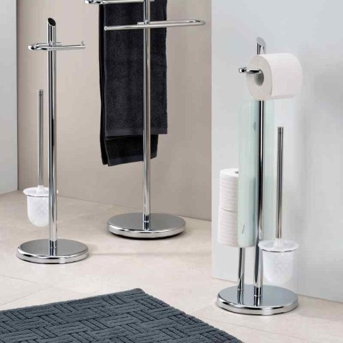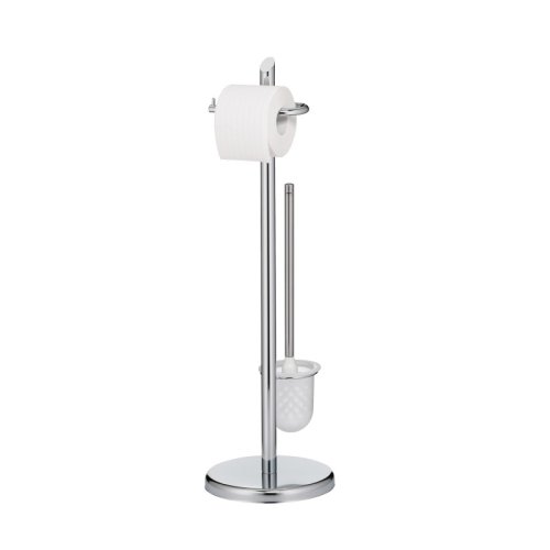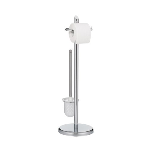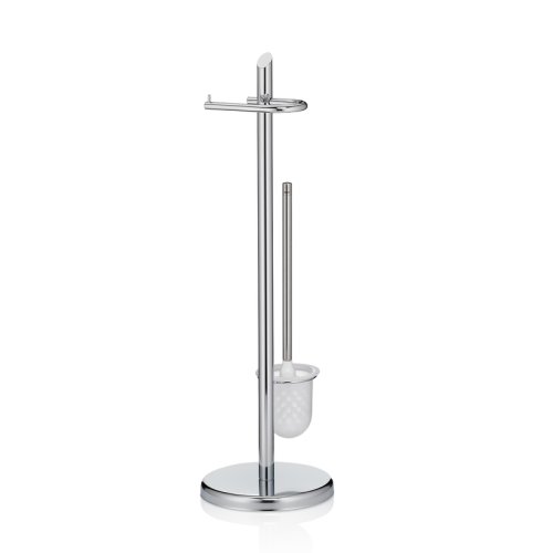 Kovová toaletní sada Ken ve stříbrné barvě s lesklým chromovým povrchem se hodí k mnoha stylům zařízení. Díky zaobleným prvkům základní desky, tyče a držáku papíru vypadá tato sada stojanů moderně a dynamicky. Varianta: stříbrná, výška: 73 cm, průměr základní desky: 22 cm. S držákem na kartáč z plastu. Kov pochromovaný lesklý 22 cm , 73 cm v