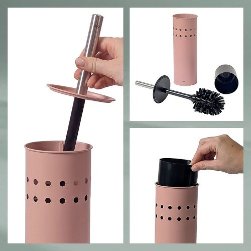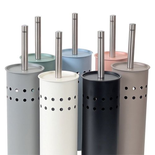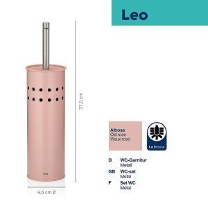 Uzavřená toaletní souprava Leo je vyrobena z kovu s práškovým nástřikem a zdobená perforovaným vzorem po celém obvodu. Rukojeť toaletní štětky je z nerezové oceli a lze ji v případě potřeby vyměnit stejně jako hlavici štětky. Vnitřní plastová nádoba zachycuje odkapávající vodu a lze ji snadno vyjmout pro vyprázdnění a čištění.