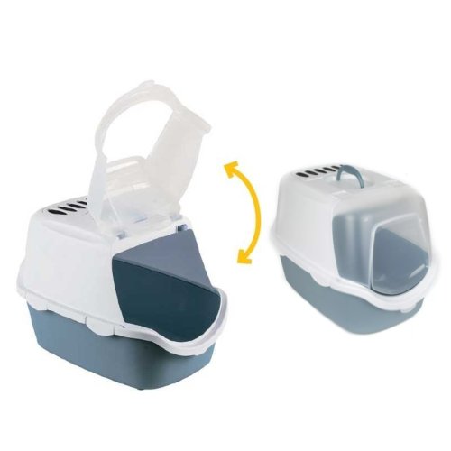 Uzavřené, prostorné wc pro kočky s dvířky z kvalitního odolného plastu.