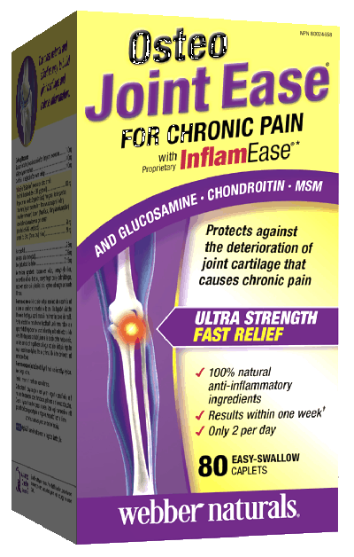 Složení: V jedné tabletě: glukosamin sulfát (chlorid draselný z krunýře garnátů/krabů) 750 mg, MSM (methylsulfonylmethan) 300 mg , chondroitin sulfát (z hovězí chrupavky) 200 mg, InflamEase® BioStandard formula: standardizovaná směs ovocných výtažků (obsah polyfenolů 76 %) - obsahuje výtažek z vinné révy (Vitis vinifera), granátového jablka (Punica granatum), jahodníku (Fragaria vesca), klikvy (Vaccinium macrocarpon), kanadské borůvky (Vaccinium corymbosum), maliníku (Rubus idaeus), borůvky (Vaccinium myrtillus), standardizovaný extrakt z Boswellia serrata (obsah kyseliny boswellové 60 %) 50 mg, standardizovaný extrakt z oddenku kurkumy (Curcuma longa) 25:1 20 mg, kyselina hyualuronová 7,5 mg, síran manganatý monohydrát – obsah manganu 0,75 mg (37,5 % RHP), tetraboritan sodný dekahydrát 0,225 mg, RHP - referenční hodnota příjmu (dříve doporučená denní dávka) Přídatné látky a další složky: nosič: zesíťovaná sodná sůl karboxymethylcelulózy, stabilizátor hydroxypropylcelulóza, protispékavá látka: mikrokrystalická celulóza, lešticí látka: kyselina stearová, potah tablety (sacharidová guma, maltodextrin, triglyceridy se středně dlouhým řetězcem), protispékavá látka: oxid křemičitý, lešticí látka: rostlinný stearan hořečnatý Upozornění pro alergiky: výrobek obsahuje surovinu pocházející z korýšů. Upozornění: Doplněk stravy. Skladujte v suchu při teplotě do 25 °C, pečlivě uzavřené, chraňte před přímým slunečním zářením a před mrazem. Uchovávejte mimo dosah dětí. Přípravek není určen pro děti, těhotné a kojící ženy. Výrobce neručí za škody vzniklé nevhodným použitím nebo skladováním. Výrobek není určen jako náhrada pestré stravy. Nepřekračujte denní doporučenou dávku. Společné užívání s jinými doplňky stravy či farmaky či užívání v případě jakýchkoliv zdravotních obtíží konzultujte se svým lékařem. Spotřebujte do data uvedeného na obalu. Upozornění pro alergiky: výrobek obsahuje surovinu pocházející z korýšů.