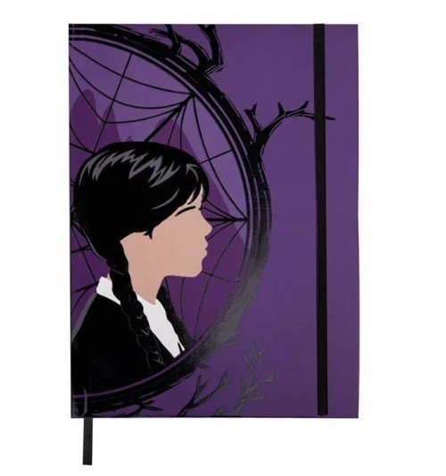 Zápisník v pevné vazbě s gumičkou s motivem ze světa Wednesday, oficiálně licencováno. Velikost A5, linkovaný.