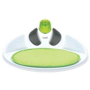 Masážní centrum má nízkou ergonomicky tvarovanou základnu s vlnitými masážními hřebeny po obou stranách. Ty budou pomáhat uspokojit kočku, která potřebuje poškrábat, nebo namasírovat a to i v těžko přístupných místech.