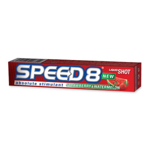 ! Obsahuje kofein, není vhodné pro děti a těhotné ženy. Denní dávka (1 ampule) obsahuje 165 mg kofeinu. Produkt není vhodný pro osoby trpící přecitlivělostí na kofein. Unikátní liquid shot SPEED8® je určen zejména pro osoby fyzicky a psychicky přetěžované, které potřebují odolávat rychlému a hektickému způsobu života. Produkt je vyroben na bázi rostlinných extraktů. U zrodu tohoto výjimečného produktu stál v roce 2003 významný expert na speciální výživu MUDr. Petr Fořt. SPEED8® je unikátním stimulujujícím tekutým doplňkem stravy s obsahem cukrem, sladidly a vysokým obsahem kofeinu. Informace ke kofeinu Evropský úřad pro bezpečnost potravin (EFSA) uvádí formou doporučení pro zdravého dospělého člověka jako maximální denní dávku kofeinu 400 mg (nebo 5,7 mg na kilogram tělesné váhy), v jednotlivé dávce potom množství 200 mg. Vždy je ale potřeba mít na paměti, že tolerance kofeinu je velmi individuální záležitostí, a tato informace má jen obecný charakter. Uvedené hodnoty se nevztahují na těhotné a kojící osoby či osoby se zdravotními omezeními. Přednosti: