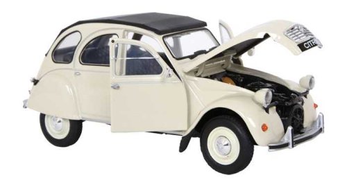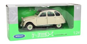 Detailní model kultovního Citroënu 2CV (kachny) z kovu a plastu má otevíratelné dveře i kapotu. Věrnost těchto modelů zvyšuje použití laků, které mají shodný barevný odstín jako skutečná auta. Konkrétní barvu si můžete zvolit z nabízených možností. Obrázek produktu nemusí vždy zachycovat barevné provedení příslušné popisu. Měřítko 1:24 je zhotovením na hraně mezi sběratelským modelem a hračkou, autíčka vyžadují opatrnější zacházení. Dodáváno v různobarevné papírové krabičce s plastovým průhledem. Hlavní vlastnosti:kovová karoserieotevíratelné dveře a kapota