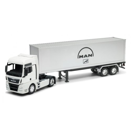 Detailní model tahače MAN TGX s přívěsem je vyrobený z kovu a plastu. Přívěs je odnímatelný a jeho dveře jsou otevíratelné. Baleno v kartónové krabičce s plastovým průhledem. Hlavní vlastnosti:tahač a přívěskovová karoserieotevíratelné dveře přívěsu