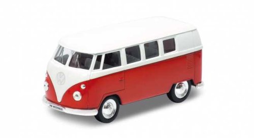 Welly - Volkswagen T1 BUS 1:34 červený Kovovo plastový model v měřítku 1:34. Model má otevírací dveře. Každé autíčko je stříkané originálním autolakem.