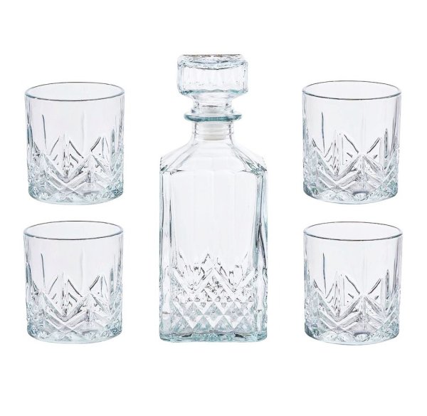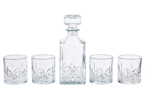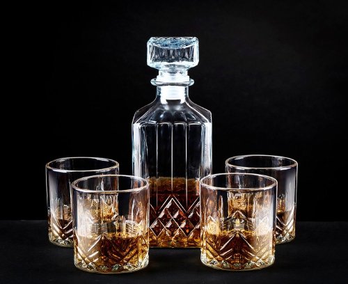 Sada se skládá z krásně navržené karafy a čtyř křišťálových sklenic, ideálních pro podávání whisky, whisky nebo jiných destilátů. Perfektní jako stylový doplněk do vašeho baru nebo jako dárek pro opravdového milovníka whisky.