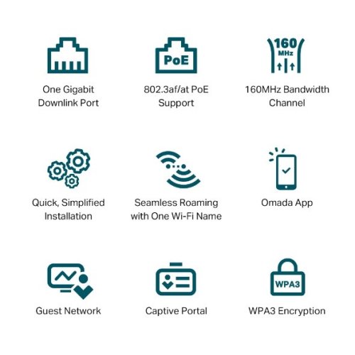 TP-Link EAP650-wall podporuje nejmodernější standard Wi-Fi 6, díky čemuž dosahuje maximálních rychlostí až 574 MB/s v 2,4GHz pásmu a 2402 MB/s v pásmu 5 GHz. Můžete tak provozovat různorodé činnosti, které jsou náročné na kvalitu internetového připojení, včetně souběžného streamování videí ve 4K kvalitě či hraní multiplayerových her bez jakýchkoliv prodlev a zadrhávání. Díky 160Hz pásmu dokáže zařízení operovat s kombinovanou rychlostí přenosu až 2976 MB/s při souběžném 2pásmovém připojení, takže i velice náročné aplikace poběží naprosto hladce.