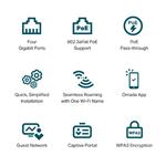Access point TP-Link EAP655-wall podporuje PoE napájení dle specifikace 802.3af/at, k čemuž poslouží 1 ze 3 GbE RJ-45 konektorů na dolní straně zařízení. Technologie Power over Ethernet představuje vysoce praktickou funkci napájení i přenosu dat pomocí 1 síťového kabelu, proto vám hravě vyřeší obtíže při instalaci zařízení ve velice náročných prostředích, neboť ušetří námahu, náklady pro připojování dodatečných napájecích kabelů i starosti s nedostatkem elektrických zásuvek.