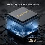 Router je vybavený masivním čtyřjádrovým 1,6GHz procesorem, který zajišťuje velkou datovou propustnost a plynulost prováděných akcí. Jednotka podporuje technologie OFDMA a 4x4 MU-MIMO pro posílení vaší Wi-Fi sítě a umožňuje více klientům přenášet data současně. Připojení je možné pro až 256 zařízení. Těšte se na rychlost až 4 804 Mbps v pásmu 5 GHz a 1 148 Mbps v pásmu 2,4 GHz.
