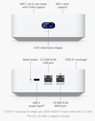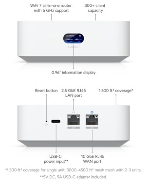 Porty: 1× 2,5GbE RJ-45 LAN, 1× 10GbE RJ-45 WAN, 1× USB-C (napájení)