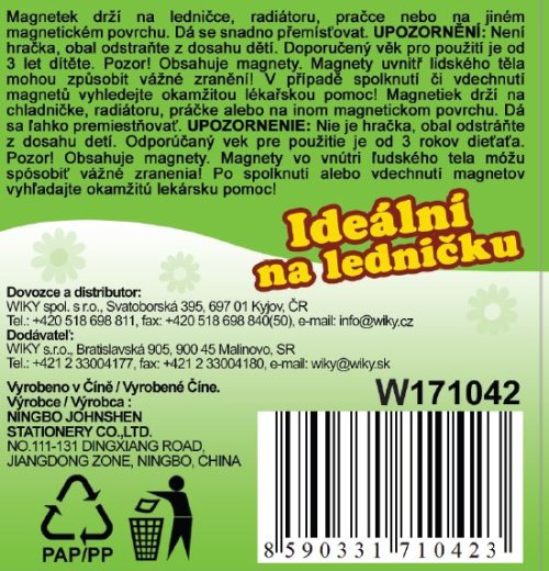 Magnetek drží na ledničce, radiátoru, pračce nebo na jiném magnetickém povrchu. Dá se snadno přemísťovat. Rozměr magnetky: 7,5 cm Vhodné od 3 let