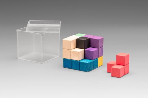 SOMA kostka se skládá ze 7 různých dílků složených ze 3 nebo 4 malých krychliček. Každý dílek má jinou barvu – červenou, modrou, bílou, žlutou, zelenou, fialovou a černou. Cílem hry je z těchto 7 dílků sestavit kostku 3×3×3. Kromě základní kostky lze z těchto dílků vytvářet i různé jiné 3D objekty nebo tělesa (240 možností) podle fantazie či zadání. Prostřednictvím hry získají děti první zkušenosti s prostorovou geometrií, procvičí si prostorové vnímání, soustředění a trpělivost. Pomocí QR kódu je možné získat 24 šablon. Vyrobeno z pevného 100% recyklovaného dřeva s certifikací PEFC, které je po použití opakovaně recyklovatelné. Zabaleno v krabičce s víkem z recyklovaného plastu a kartonu. Návod v německém jazyce je součástí balení. Hlavní vlastnosti: 7 dílků v 7 barvách skládajících se ze 3 nebo 4 kostičekseznámení s prostorovou geometrií prostřednictvím hryrozvíjí prostorové vnímání, soustředění a trpělivostvyrobeno ze 100% recyklovaného dřeva s certifikací PEFCvyrobeno v Německu