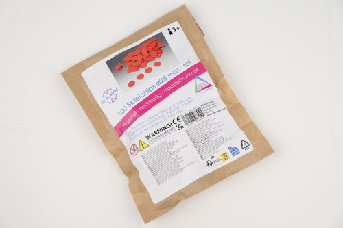 Univerzální herní žetony vhodné jako doplněk ke společenským a výukovým hrám. Podporují rozvoj porozumění množství, třídění a porovnávání. Ideální pro počítání, bodování nebo vizuální znázornění úloh. Vyrobeno ze 100% recyklovaného plastu, který je po použití opakovaně recyklovatelný. Zabaleno v uzavíratelném papírovém sáčku s certifikací FSC. Hlavní vlastnosti: 100 červených žetonůvhodné pro školní i domácí použitírozvíjí počítání a vnímání množstvívyrobeno v Německu
