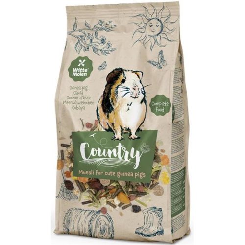 Společnost Witte Molen vyrábí krmiva již od roku 1740 a tato směs – WitteMolen Country pro morčata – představuje v jejich portfoliu návrat ke klasickým krmivům. Jde o kvalitní, vyvážené krmivo s na vlákninu bohatými vojtěškovými (alfalfa) stébly, zeleninou, ovocem a přidaným vitamínem C. Kombinace těch nejlepších přírodních surovin sestavená na základě odborných znalostí o potřebách morčat zaručí vašemu drobnému mazlíkovi kvalitní stravu, na kterou se vy i on můžete spolehnout. Hlavní přednosti: